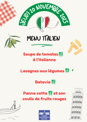 Menu servi dans les cantines le jeudi 20 novembre 2025 :
