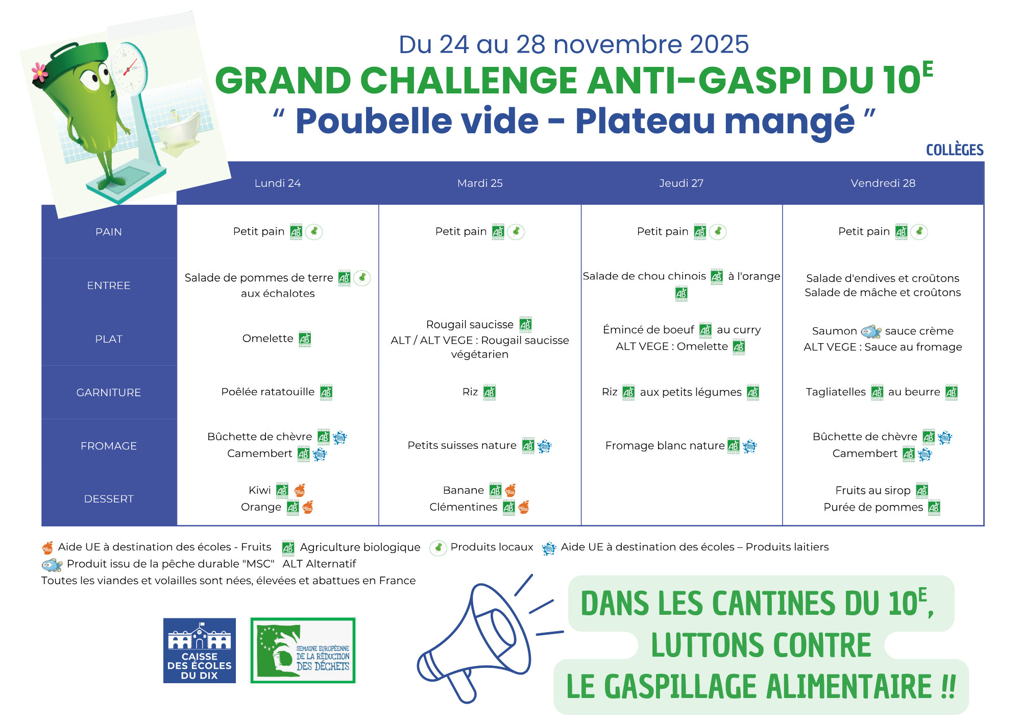 Grand Challenge ANTI-GASPI dans toutes les cantines du 10 à l'occasion de la Semaine Européenne de la Réduction des Déchets (SERD) !